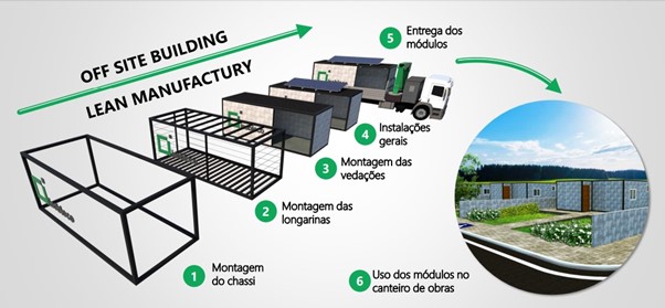 Alguns desses pontos, como o formato, tecnologia e a infraestrutura, são observados em modelos que chamamos de construção modular.